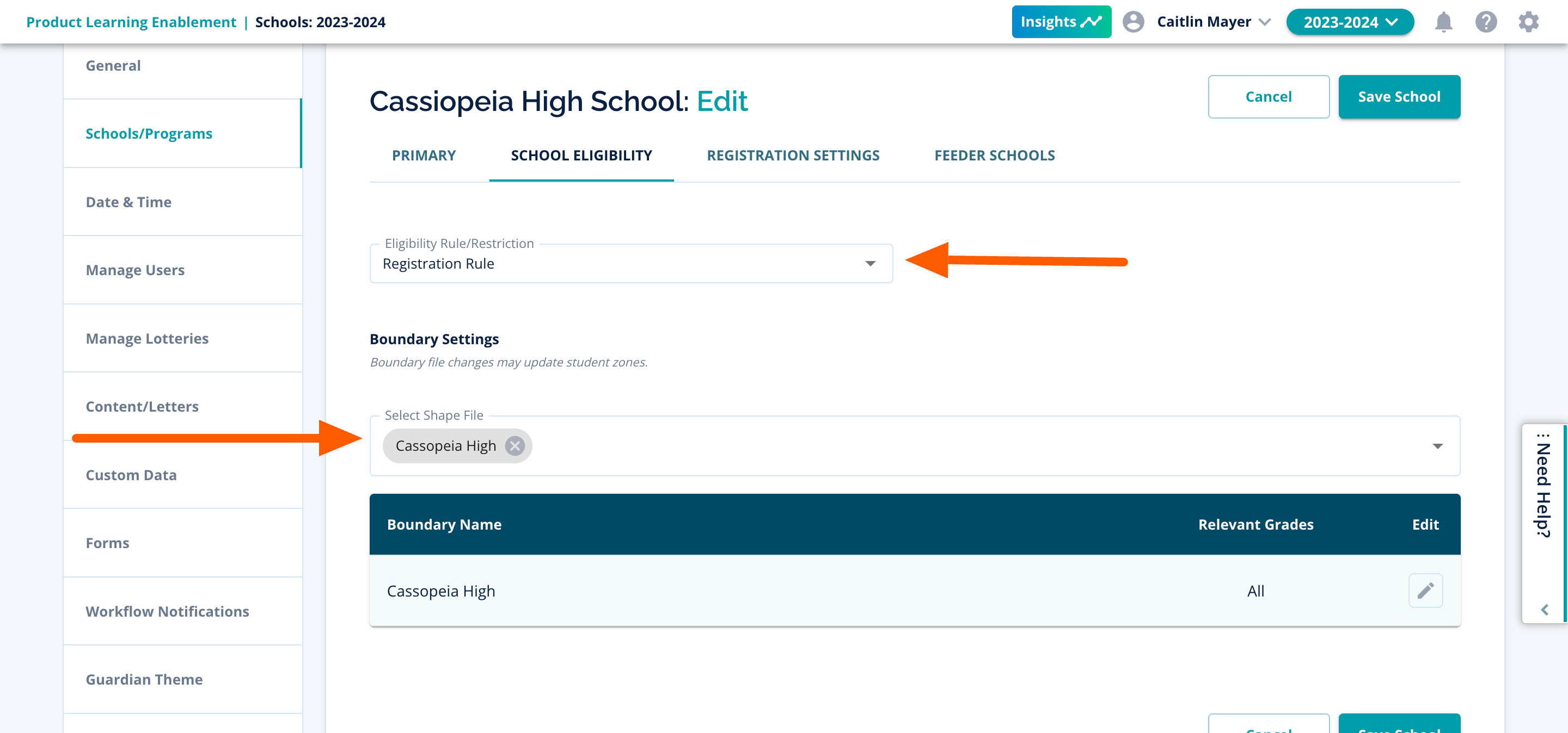 The top settings you'll want to review here will be the Eligibility Rules/Restrictions and the Boundary Settings. These two settings will typically help to dictate where students are allowed to apply.