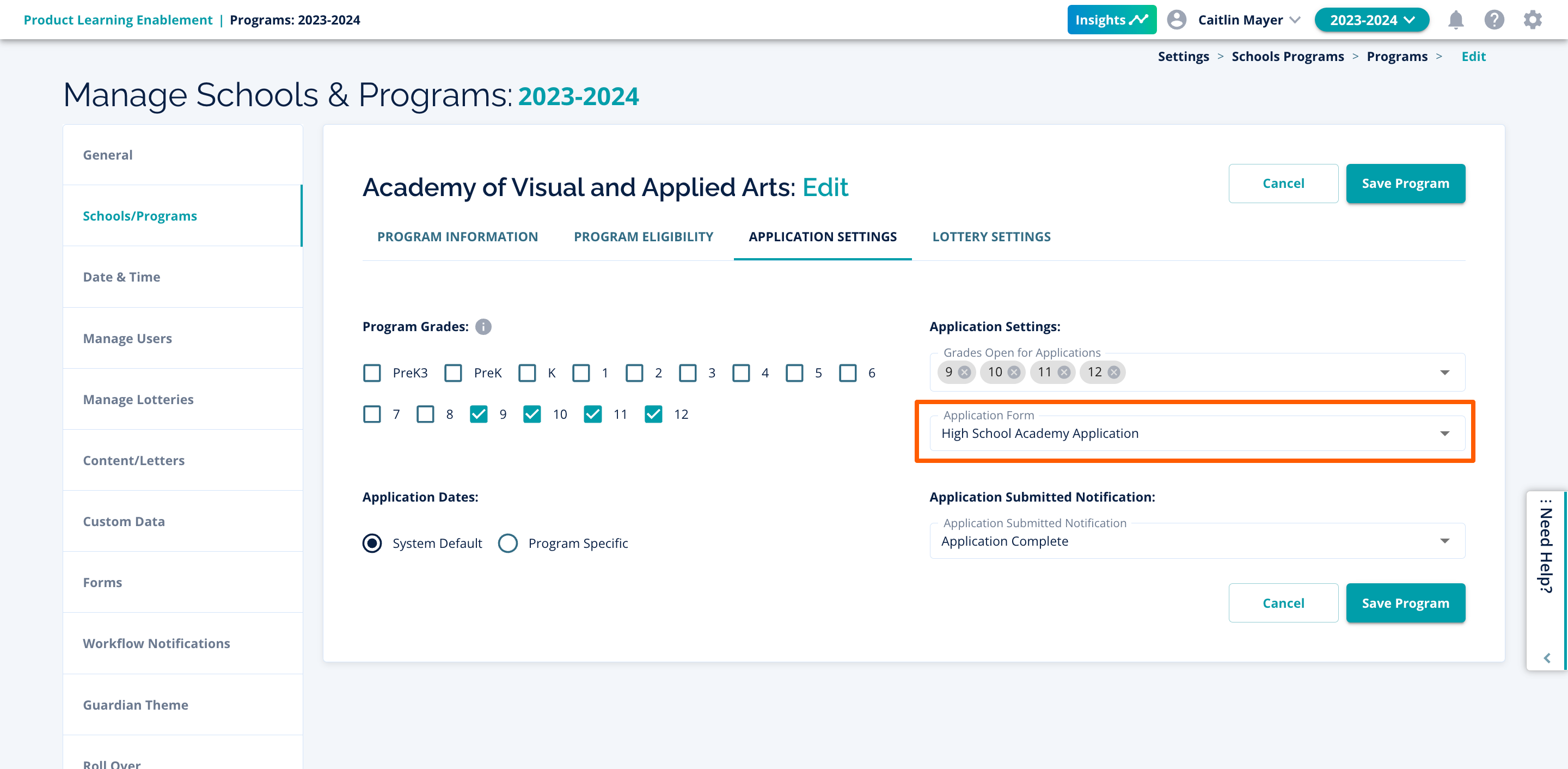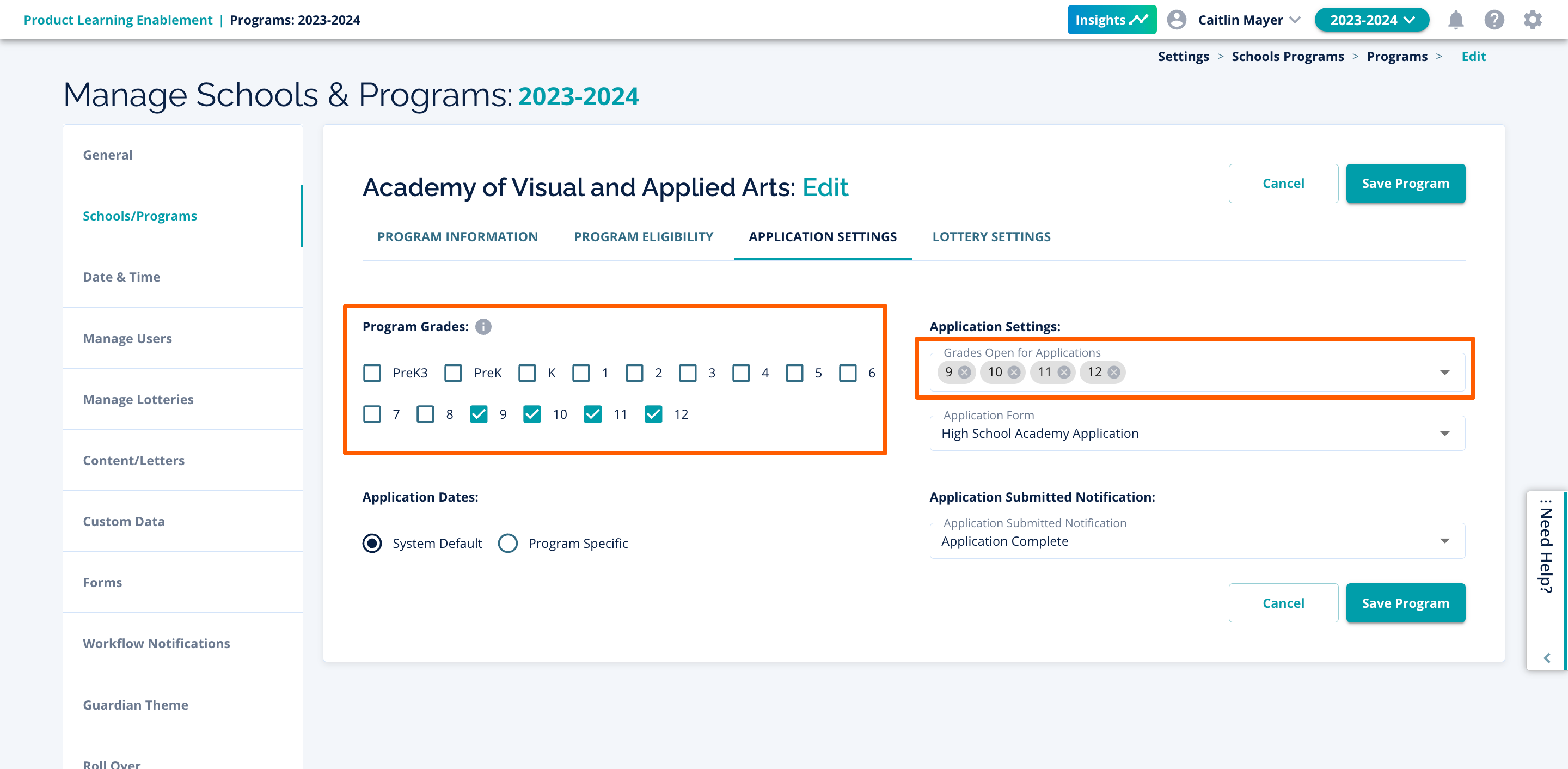 Reviewing these settings on a yearly basis ensures that application processes, lotteries, and more run smoothly after the rollover process every year. It is possible and likely that processes may change and improve year to year.