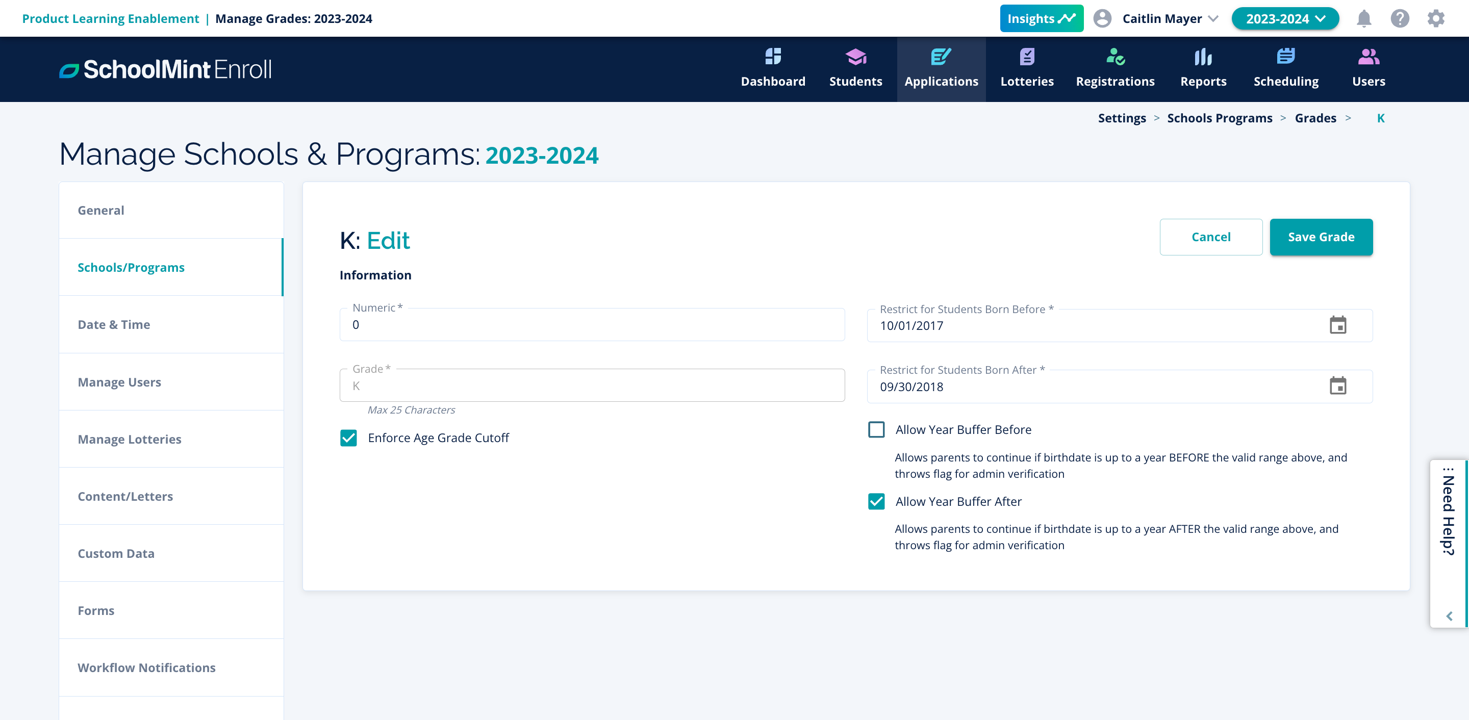 If new schools or new programs are added, you'll want to make sure these are in the Enroll platform. If a school or program is removed, you'll want to disable it. Grades also have the possibility of being added to or removed from schools and programs. During the rollover, birthdate ranges are automatically incremented by one year, but what if your policy updates involved a birthdate range update?