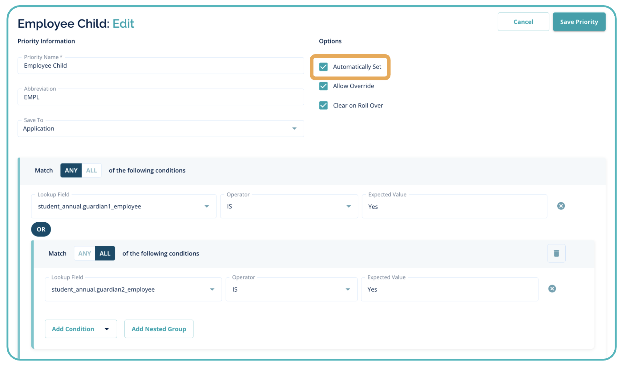 - Confirm each lottery priority is saved to the correct record (student annual or application)