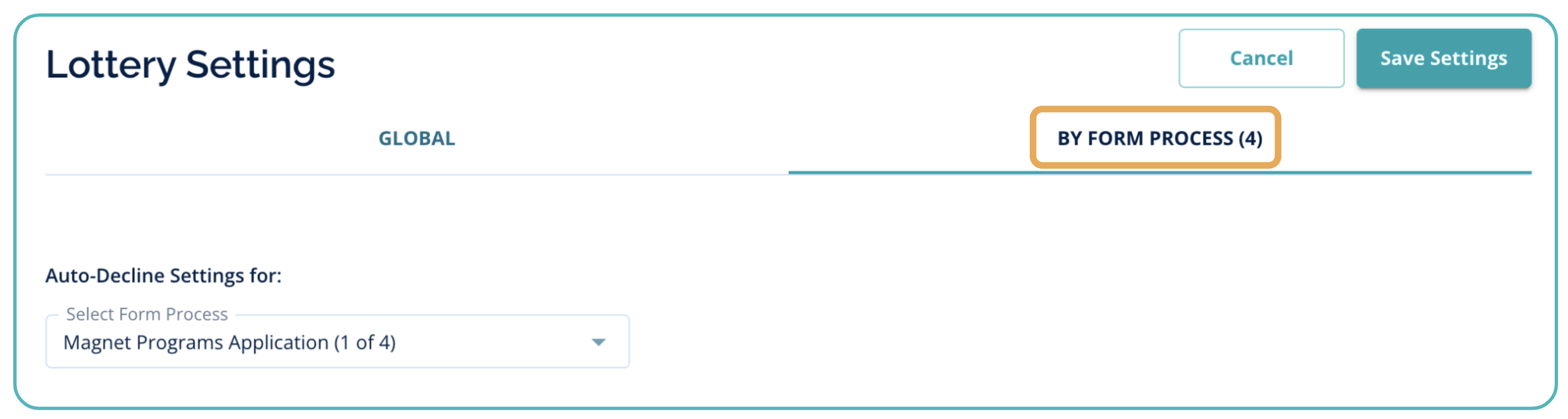 - Review Lottery Settings by Form Process
