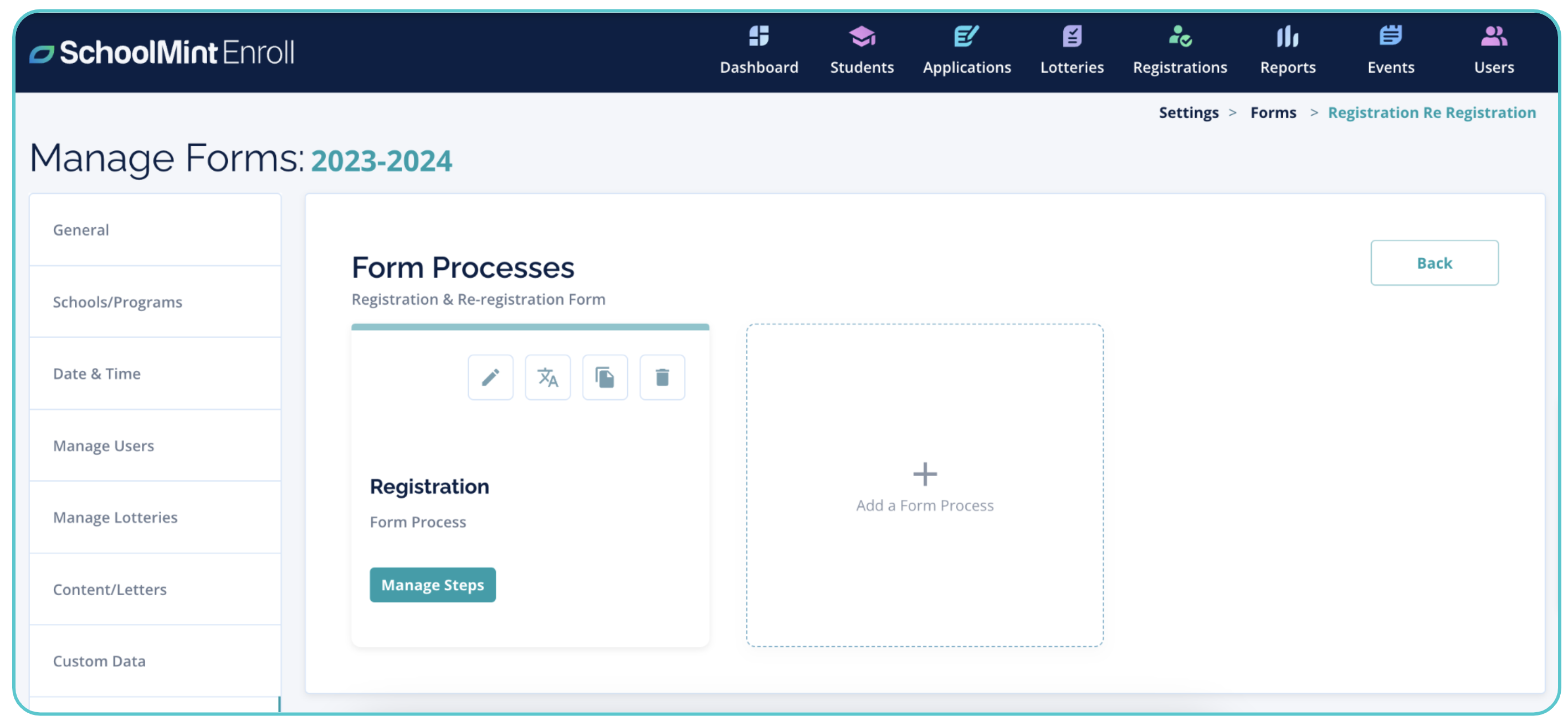 It is important to review the registration settings tied to your schools to ensure grades, form processes, and more are correctly assigned to schools so that students are able to register for the appropriate grades using the appropriate forms!