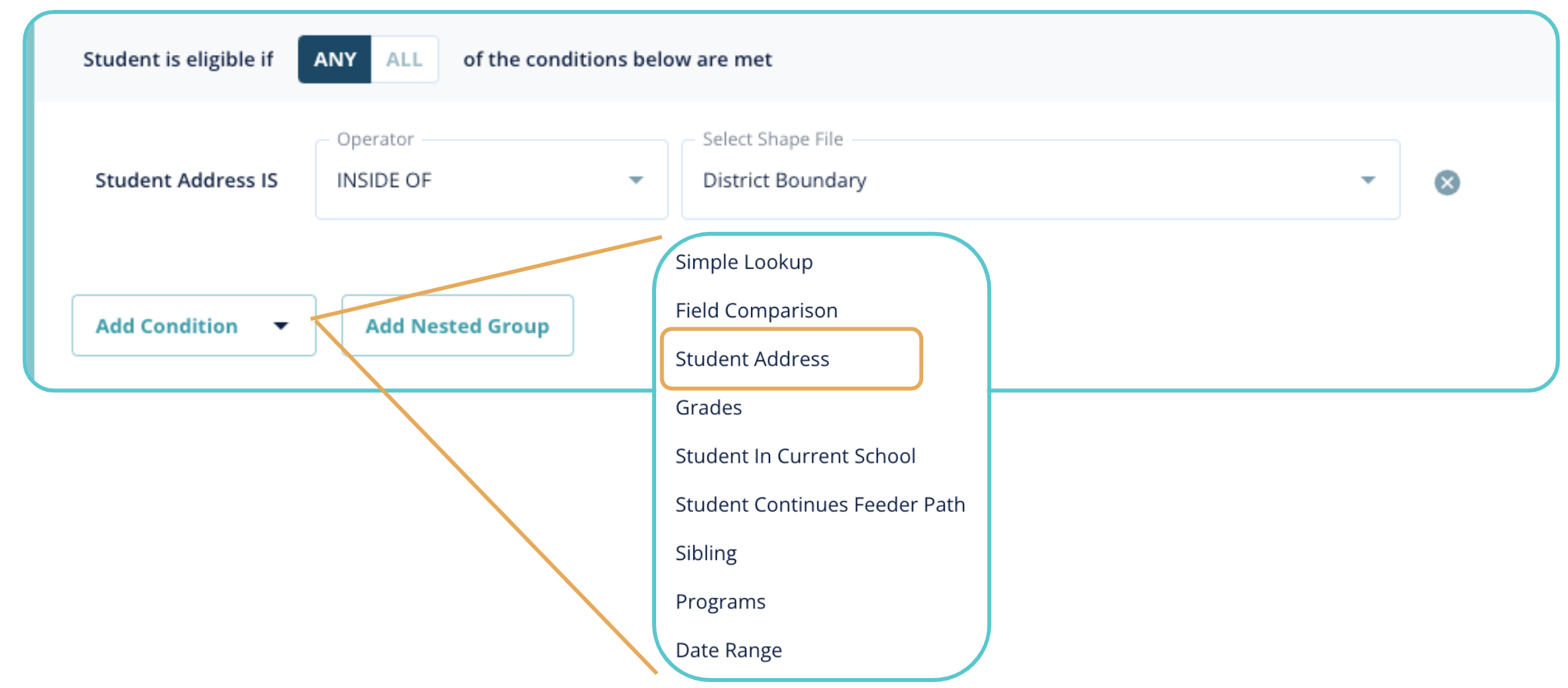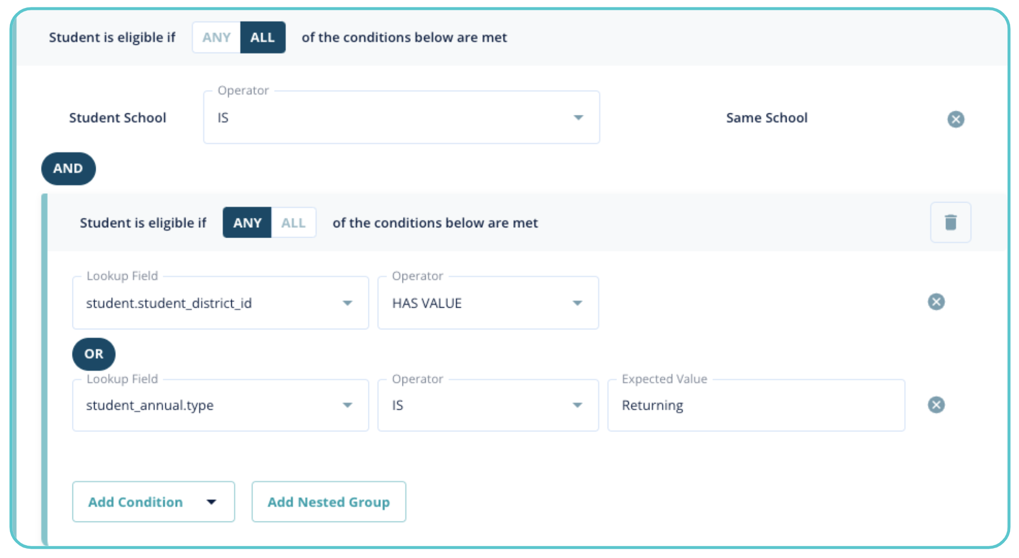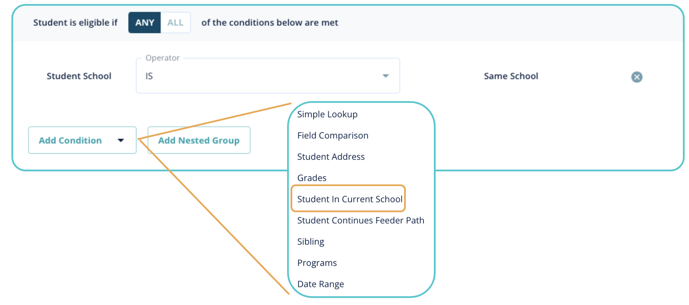 You can use the “Add Condition” option to utilize pre-configured rules. “Simple Lookup” allows you to configure your own rules.