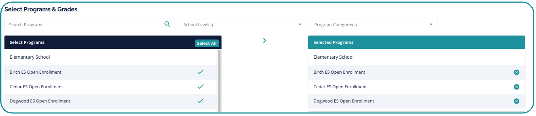 Step Six: Select the Grades to be included in your lottery for the Programs you selected