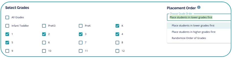 Step Seven: Select the Placement Order (only applies to the lottery run)