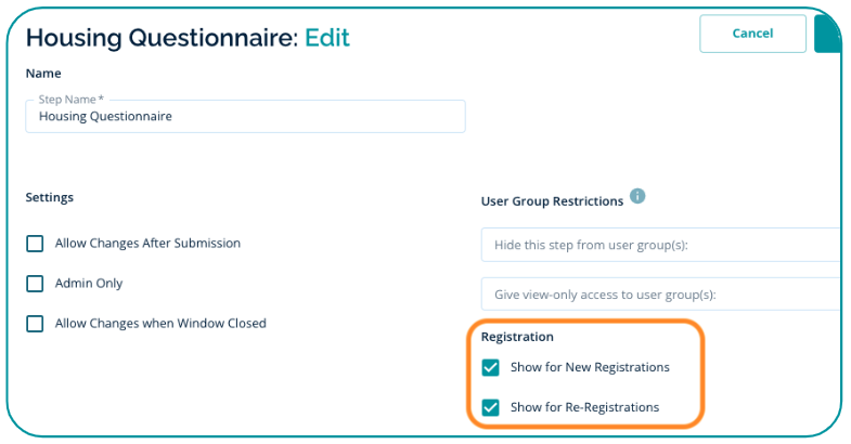 - Restricting a Form Step to New Registrations or to Re-Registrations