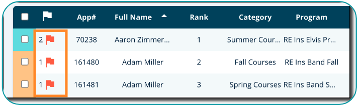In Enroll, Flags are used as an alert to admins that an application or registration may need further review. Several types of flags are available by default, and you can add custom flags if needed.