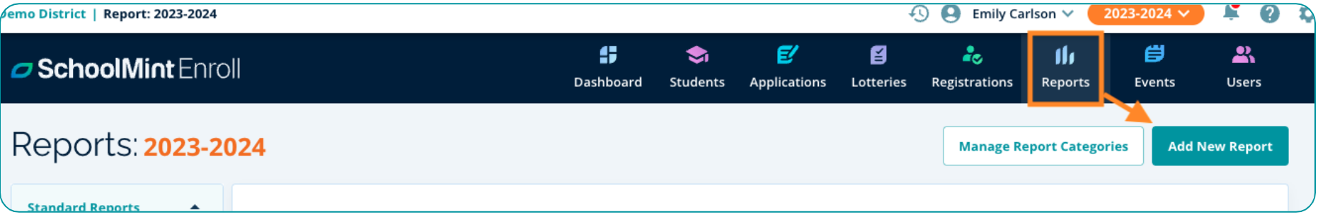 1). Within the Reports module, click Add New Report.