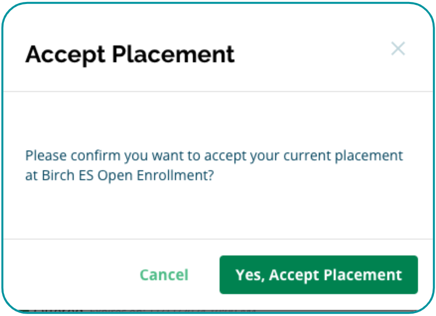 Upon clicking the "Accept" button, a pop-up modal will appear for the guardian to confirm accepting the placement.