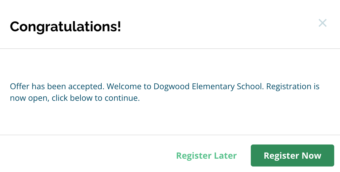 If your school is using Registrations, and registration forms are open, the guardian will have the option to then continue with their registration form from the pop up, as well as on their dashboard: