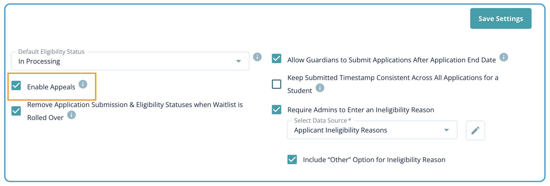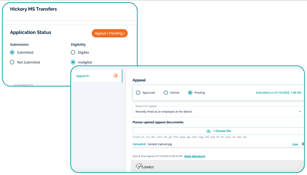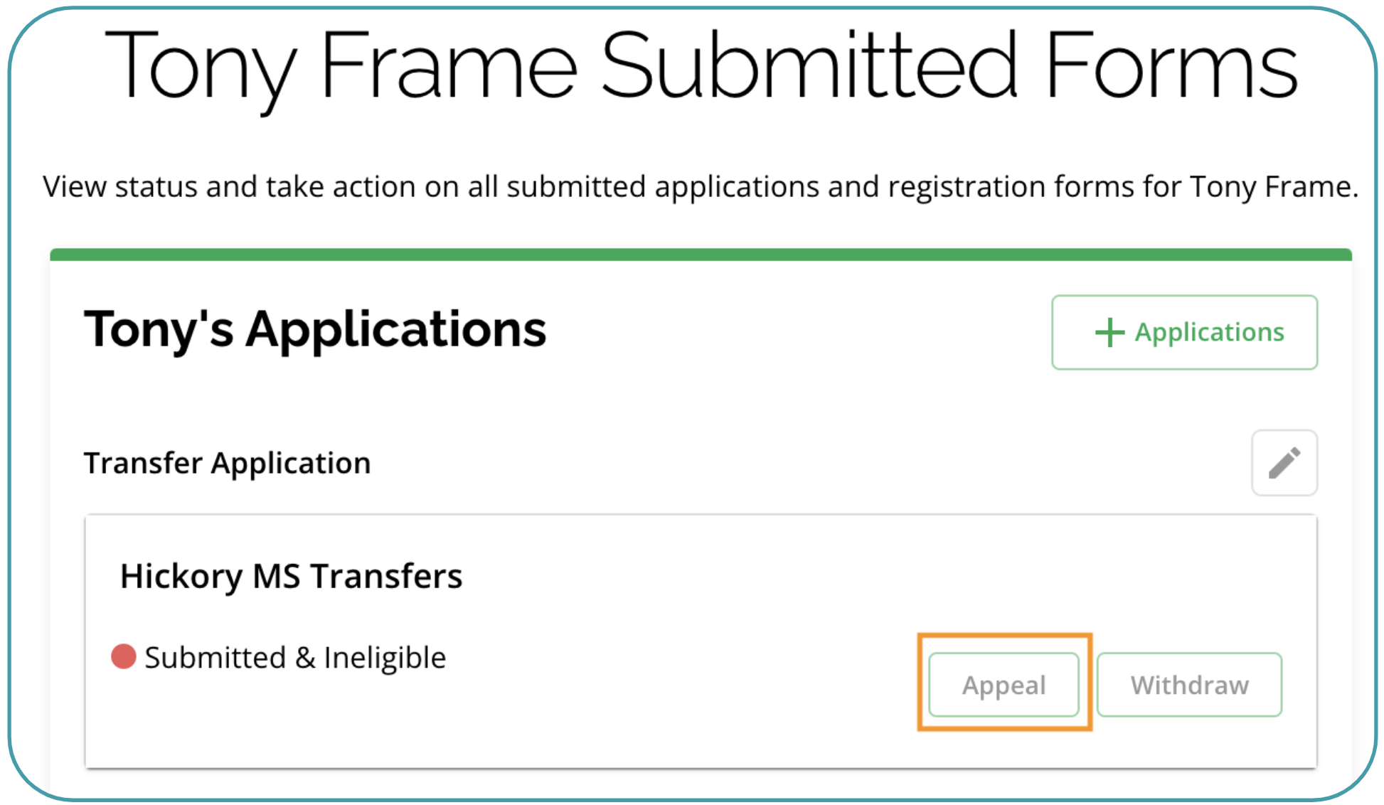 - Example: Applications that are marked as Ineligible can be appealed.