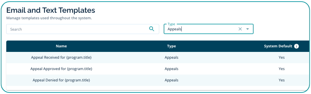 - Customizing Appeals Email/Text Templates
