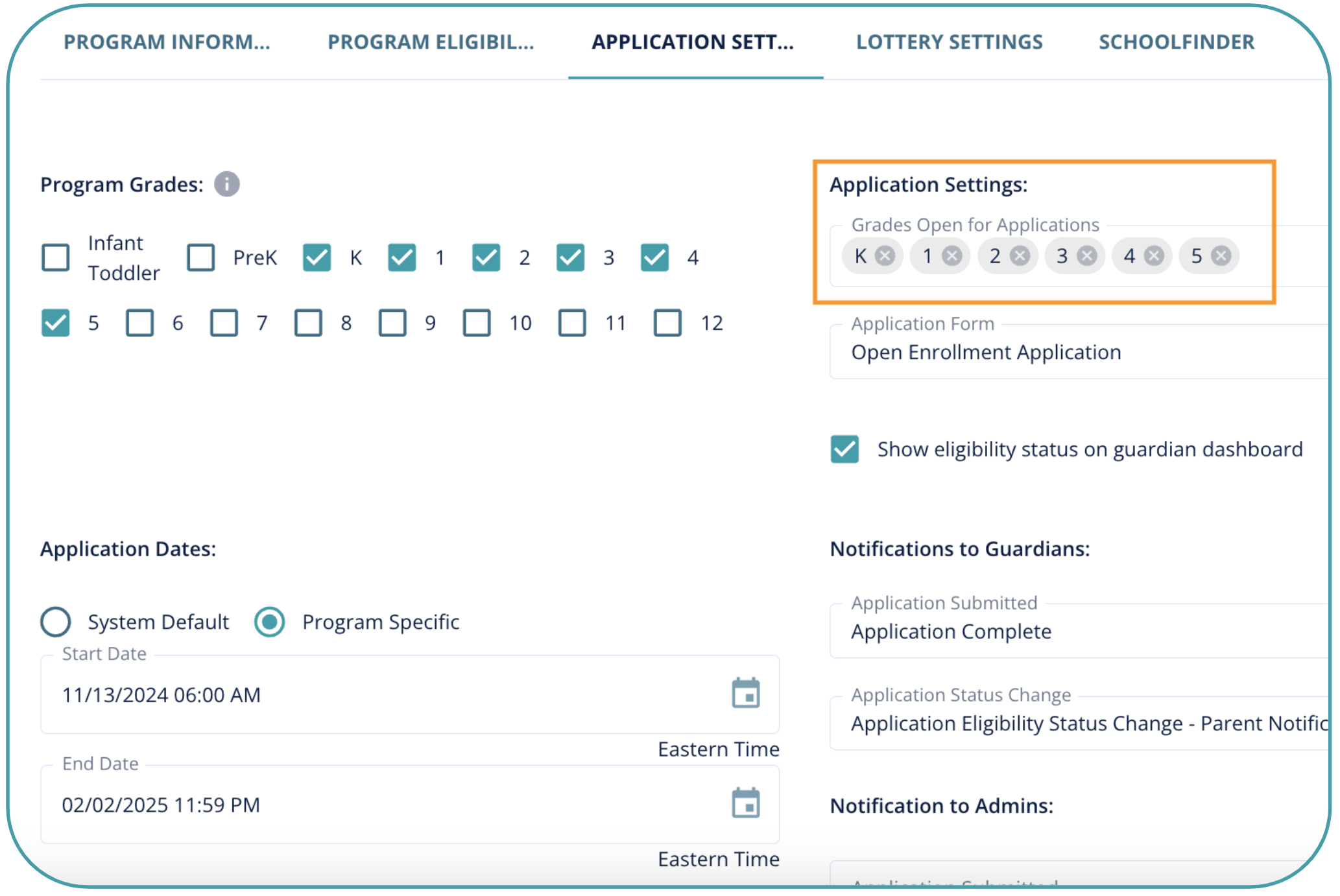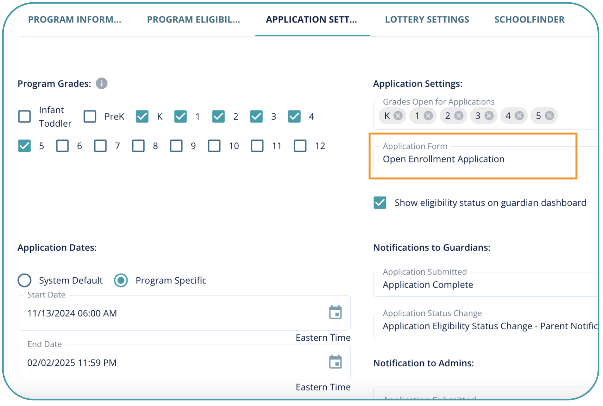 - Under Settings > Manage Programs > Edit Program > Application Settings tab