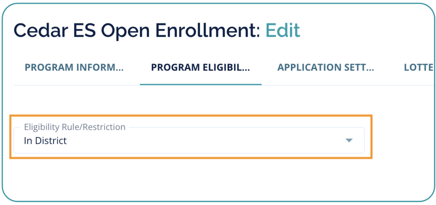 - Under Settings > Manage Programs > Edit Program > Program Eligibility tab