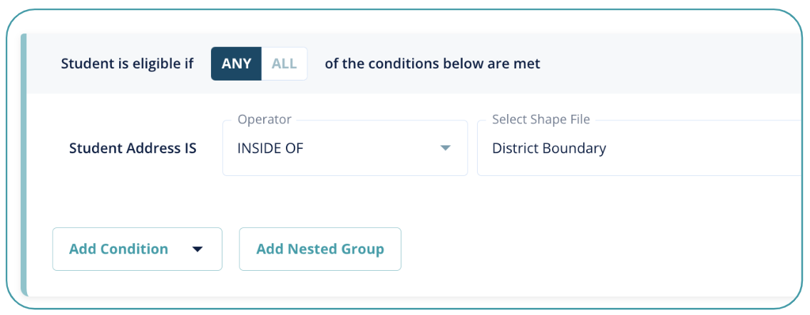 - Example: only students whose address falls within the district boundary may apply to the program