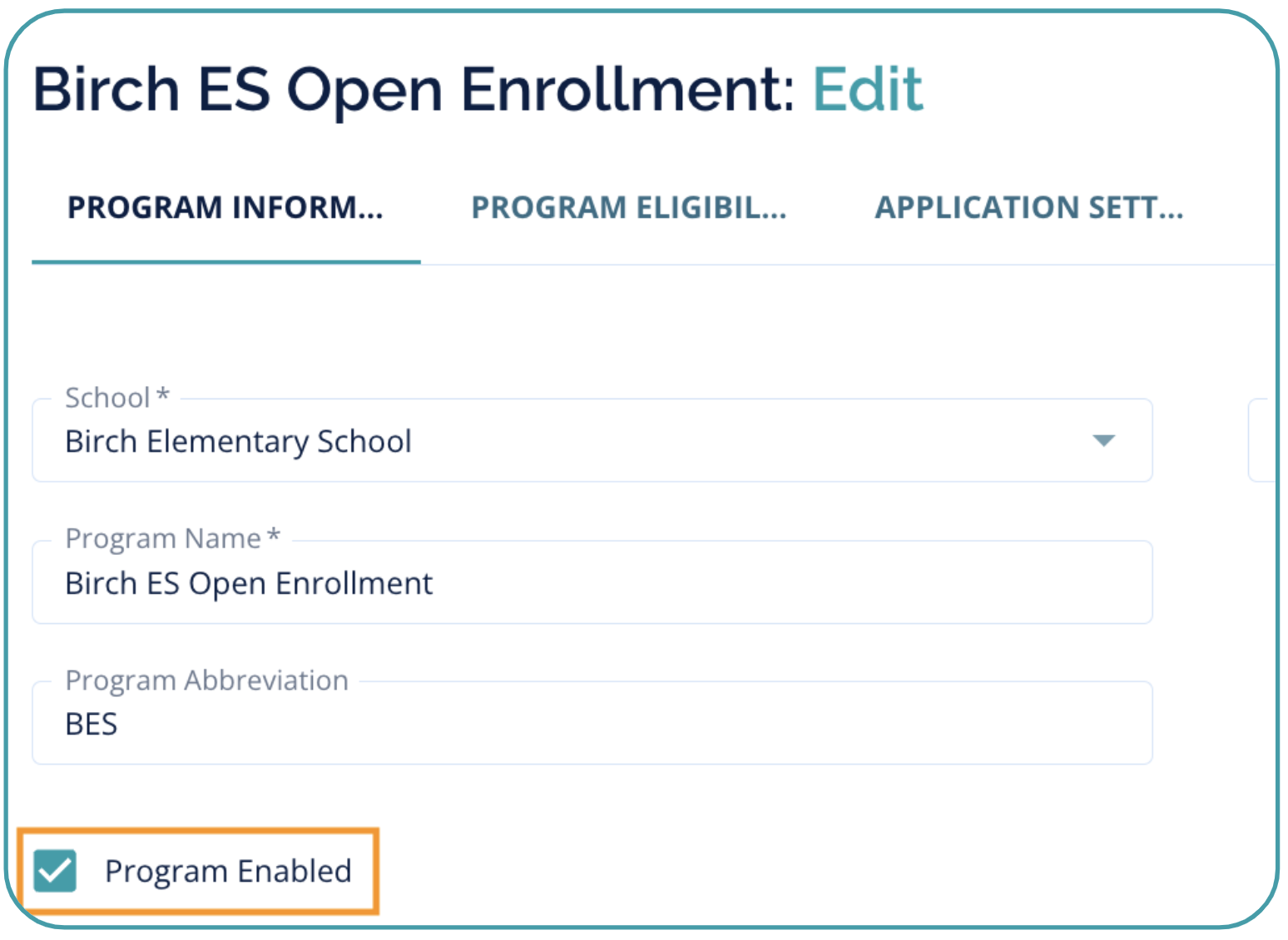 - Under Settings > Manage Programs > Edit Program > Program Information tab