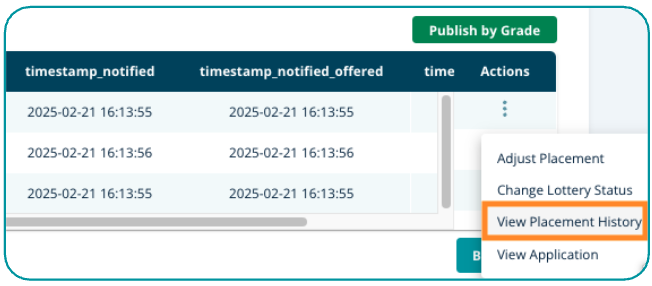 - From the lottery list > Actions 3-dot menu > View Placement History
