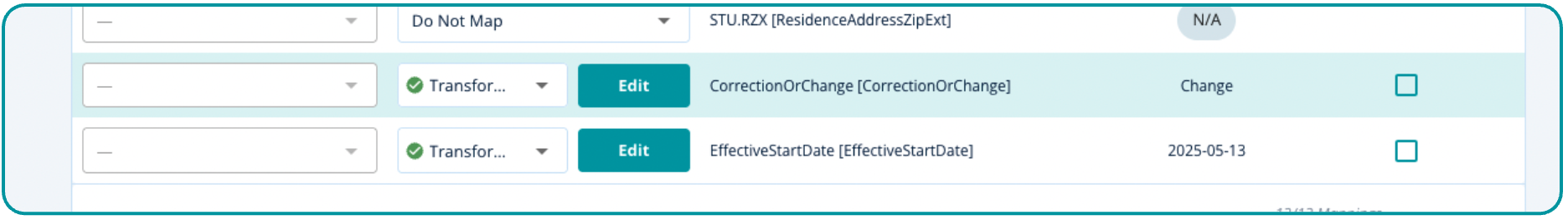 Note: If you do not include the fields, CorrectionOrChange and EffectiveStartDate, included in your field mapping, the following error message will be displayed.