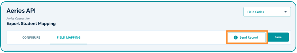 Use the “Send Record” button to test exporting one student record. The test record is the one being displayed in the “Mapped Value” column.