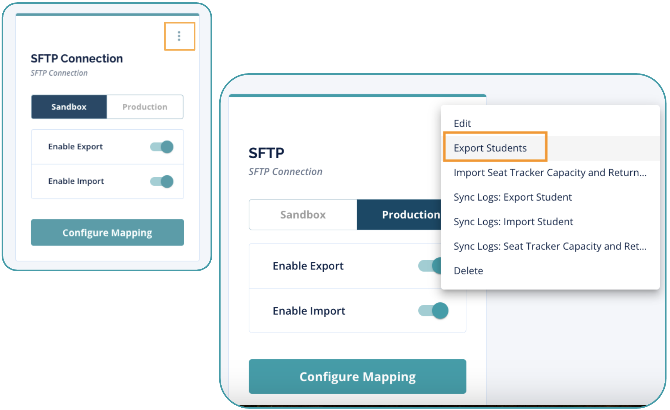 - Select “Export Students”. The export file will be saved on the SFTP server.