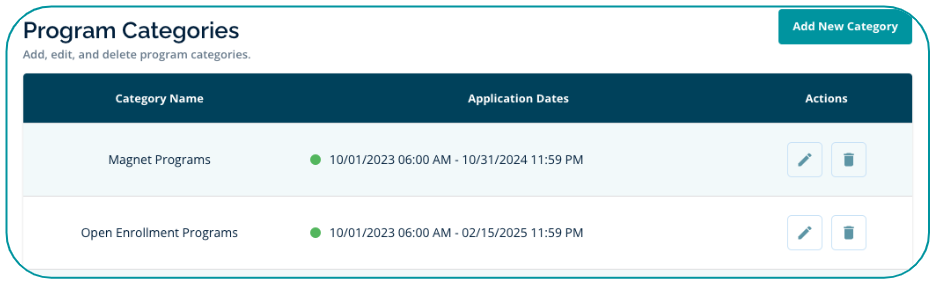 - Set Application Dates for all Programs in a Program Category