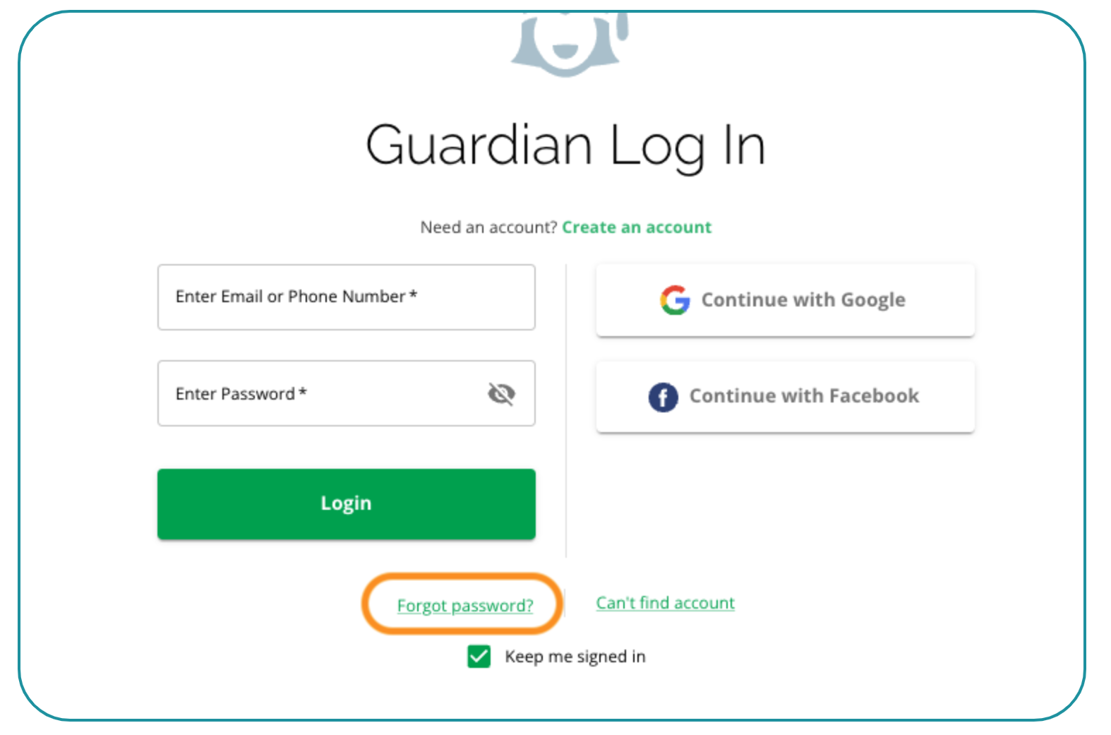 Step 1: Advise the guardian to navigate to your Log In page and click the "Forgot Password?" link near the bottom of their login screen, underneath the Login button.