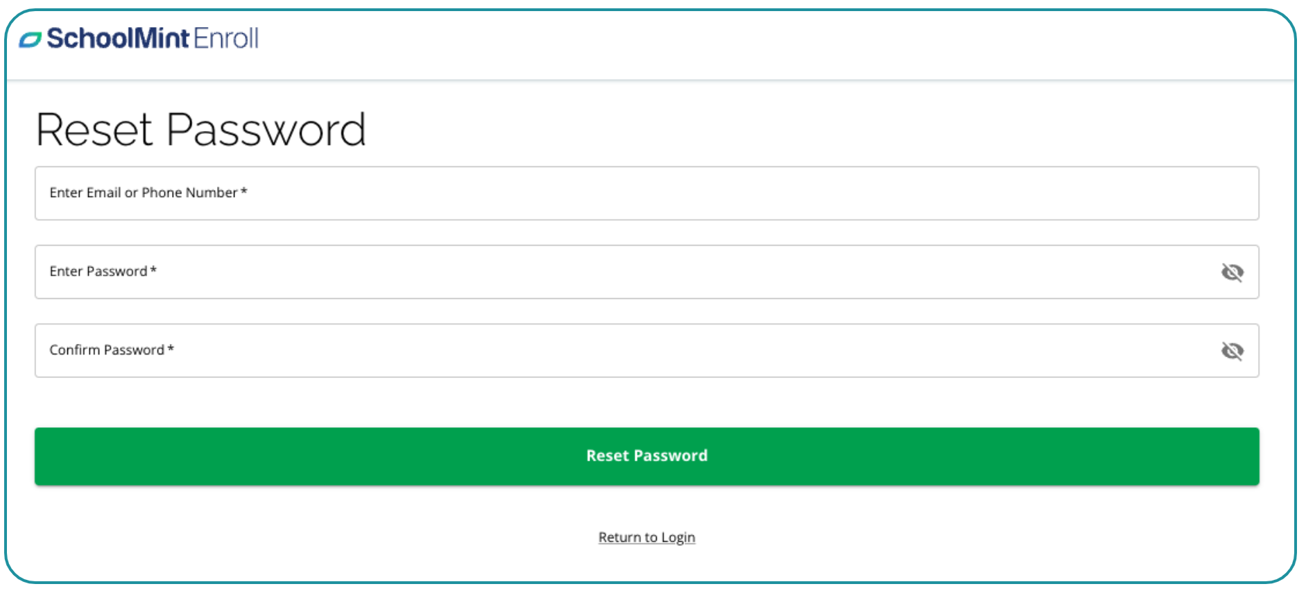 - If an admin user in your site sent an ad hoc email directly to the family using the email template: "Password Reset Required for SchoolMint Enroll Account", it is expected that the Reset Password link would cause an error