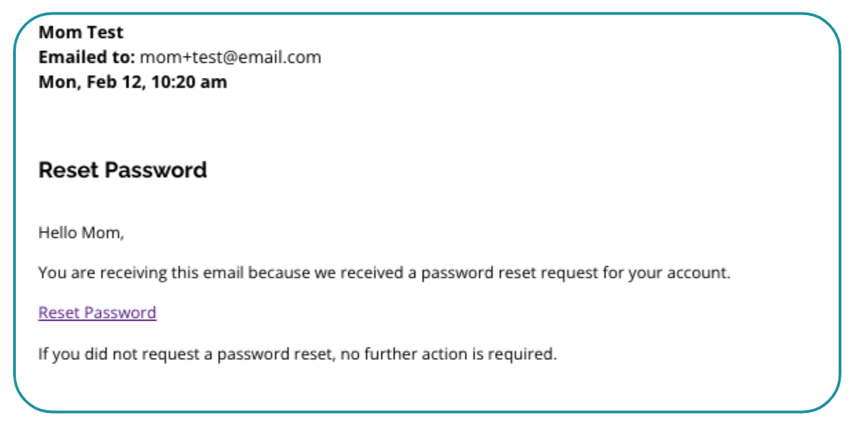 Step 3: The system will send an email to the guardian with instructions and a link to reset their password.